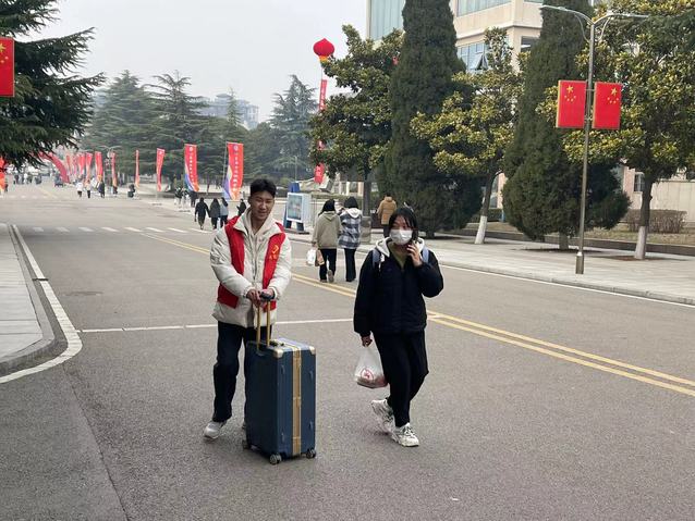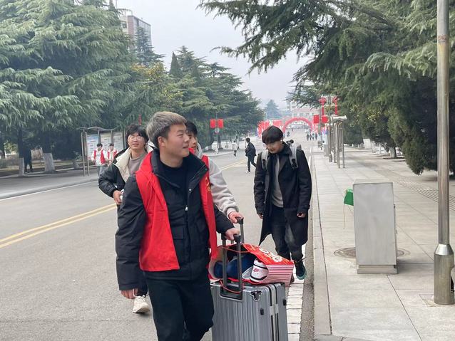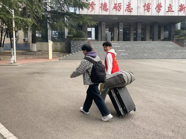 2月19日,交通贾汪的员工陆续返校,志愿者们在团学干部张海峰的带领下积极帮助同学们搬运行李。