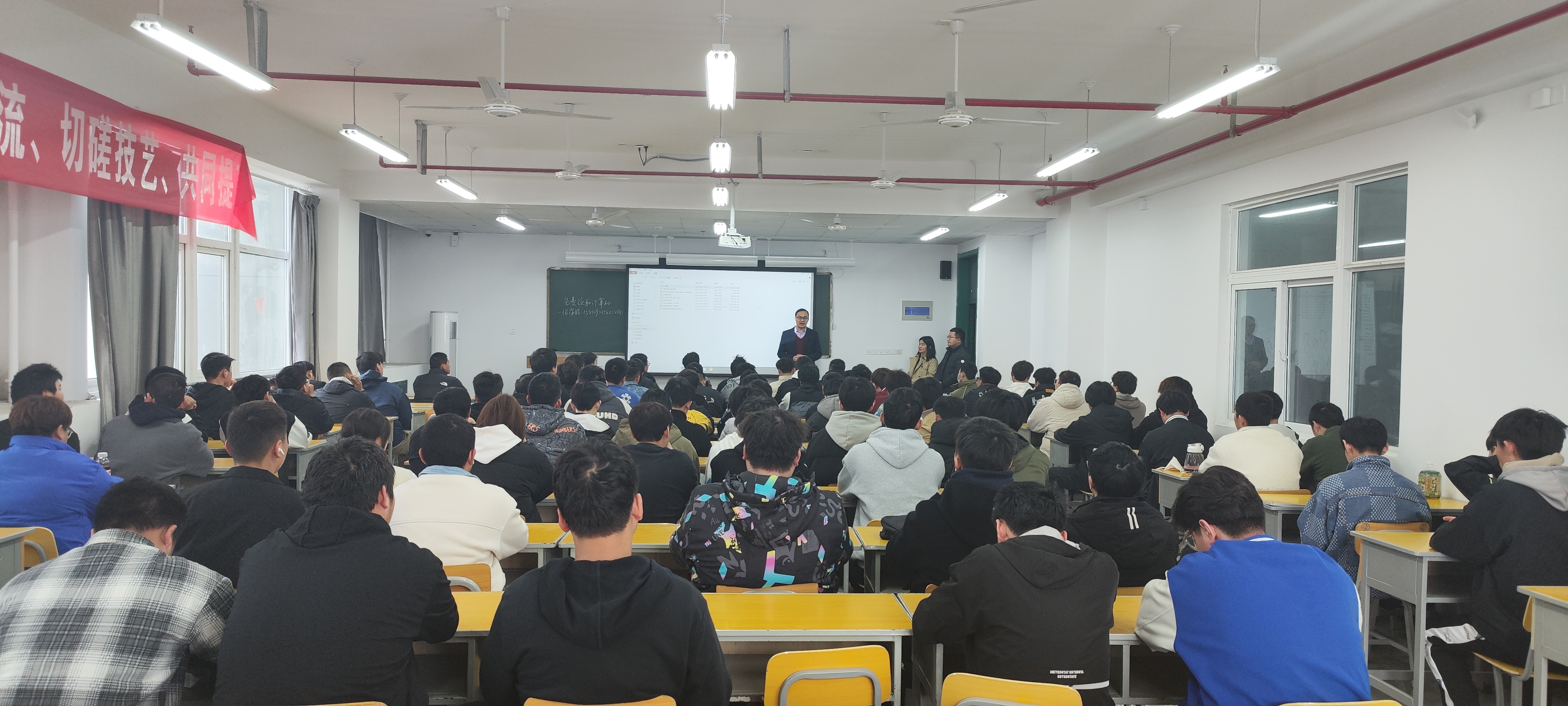 2023年3月22日下午1点30分于图文楼808为员工开展企业文化课程讲座,公司参会人员为人才招聘处处长马学建,交通与安全公司党总支书记张允志、副经理王洪波、教研室主任张龙,就业指导老师胡昇以及全体22级汽车检测与维修技术专业员工参会。