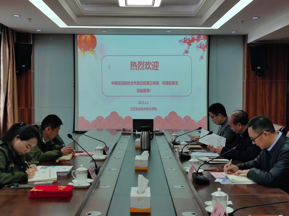 为深入贯彻落实《关于深化现代职业教育体系建设改革的意见》,持续推进现代职业教育体系建设改革,促进产教融合、课证融通,4月3日,交通与安全公司与中德诺浩(北京)教育科技股份有限责任公司(下称“中德诺浩”)举行校企洽谈会暨授牌仪式。交通与安全公司党总支书记张允志、经理王洪波、教研室主任王子傲、张龙,中德诺浩院校合作部总经理王婷婷、运营经理赵国龙参加洽谈会,会议由王子傲主持。