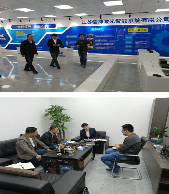 江苏镭神常务副总胡小涛接待王经理,双方就校企合作深度融合进行密切交谈,双方就智能网联汽车专业行业发展前景、专业课程设置,专业人才培养、企业岗位设置等进行了深入洽谈,此次会谈,对公司智能网联专业人才培养方案调整和实习就业去向奠定了基础,在校企合作方面初步达成协议。