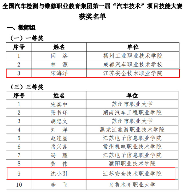 近日,公司教职工积极参与全国汽车检测与维修职业教育集团举办的第一届“汽车技术”项目技能大赛。本次大赛,共有来自全国 34 所院校 85 名选手参加比赛。公司宋海洋、沈小引老师分别荣获教师组一等奖、三等奖;杨松、胡铭凯分别荣获员工组二等奖、三等奖;王洪波、梁超老师分别荣获指导教师组二等奖、三等奖。