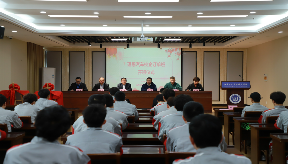 4月25日上午,我校与理想汽车校企合作“扬帆计划”订单班开班仪式在云龙校区综合楼第一报告厅举行。K1体育吉智副经理、交通与安全公司张允志书记、王洪波副经理、理想汽车常州智能制造基地北区总装负责人卫延、理想汽车校企合作负责人王健、理想汽车常州智能制造基地技工招聘经理刘至欢、理想汽车校企合作经理陈煜炜,以及汽车专业教师和订单班40余名同学一同参加了开班仪式。