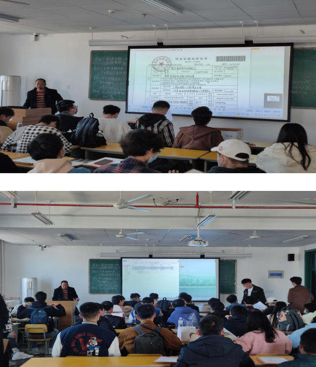 此次讲座主要采用线下形式进行,胡昇老师首先介绍了23年校园招聘会具体实施计划,本次招聘会分线上线下两个分会场展开,未就业员工要认真准备按时参会;然后针对员工在就业方面存在问题进行解答,指导员工如何填写就业协议书,及网上登录系统的操作,为员工在就业协议上报提供很大的帮助。