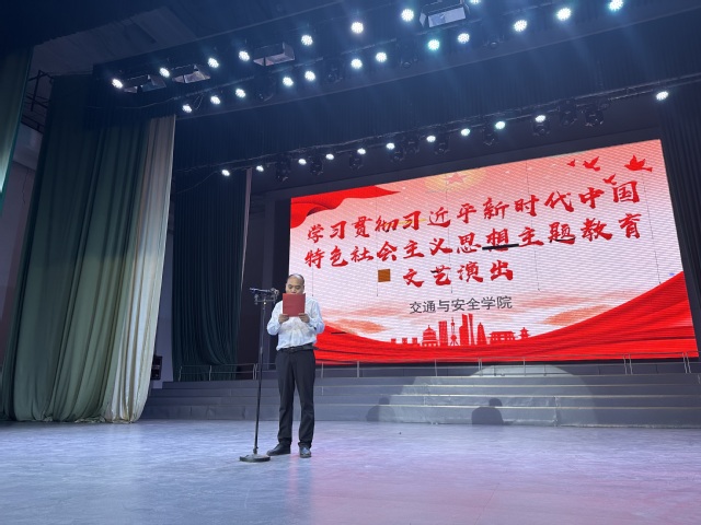 5月17日晚,交通公司全体师生共聚在文化中心,参加“学习贯彻习近平新时代中国特色社会主义思想主题教育”文艺演出,开场由党总支书记张允志发表主题讲话。