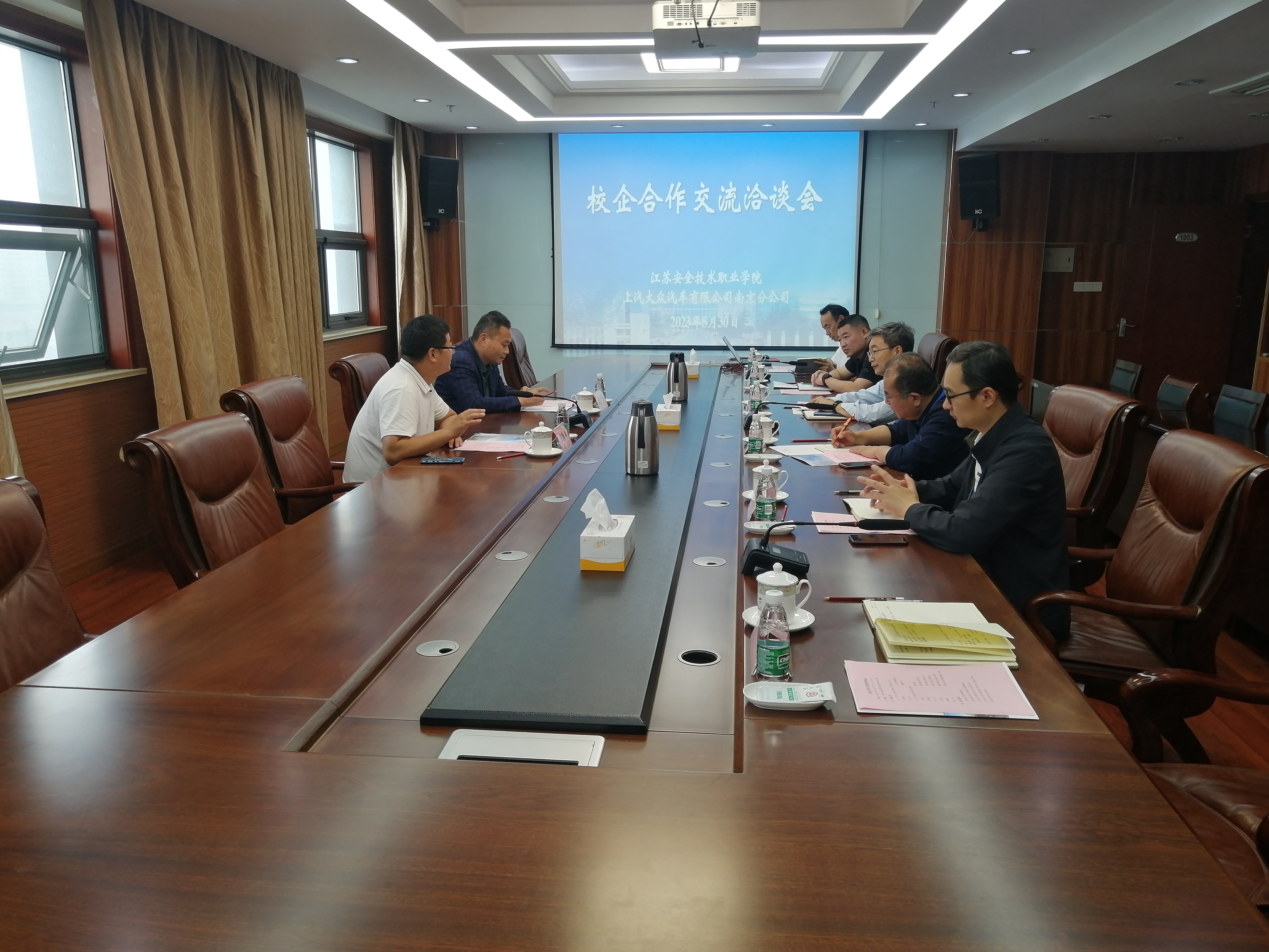 5月30日上午上海大众汽车有限公司南京分公司人力资源总监陈德雨、招聘经理历广丰一行到公司开展校企合作洽谈。