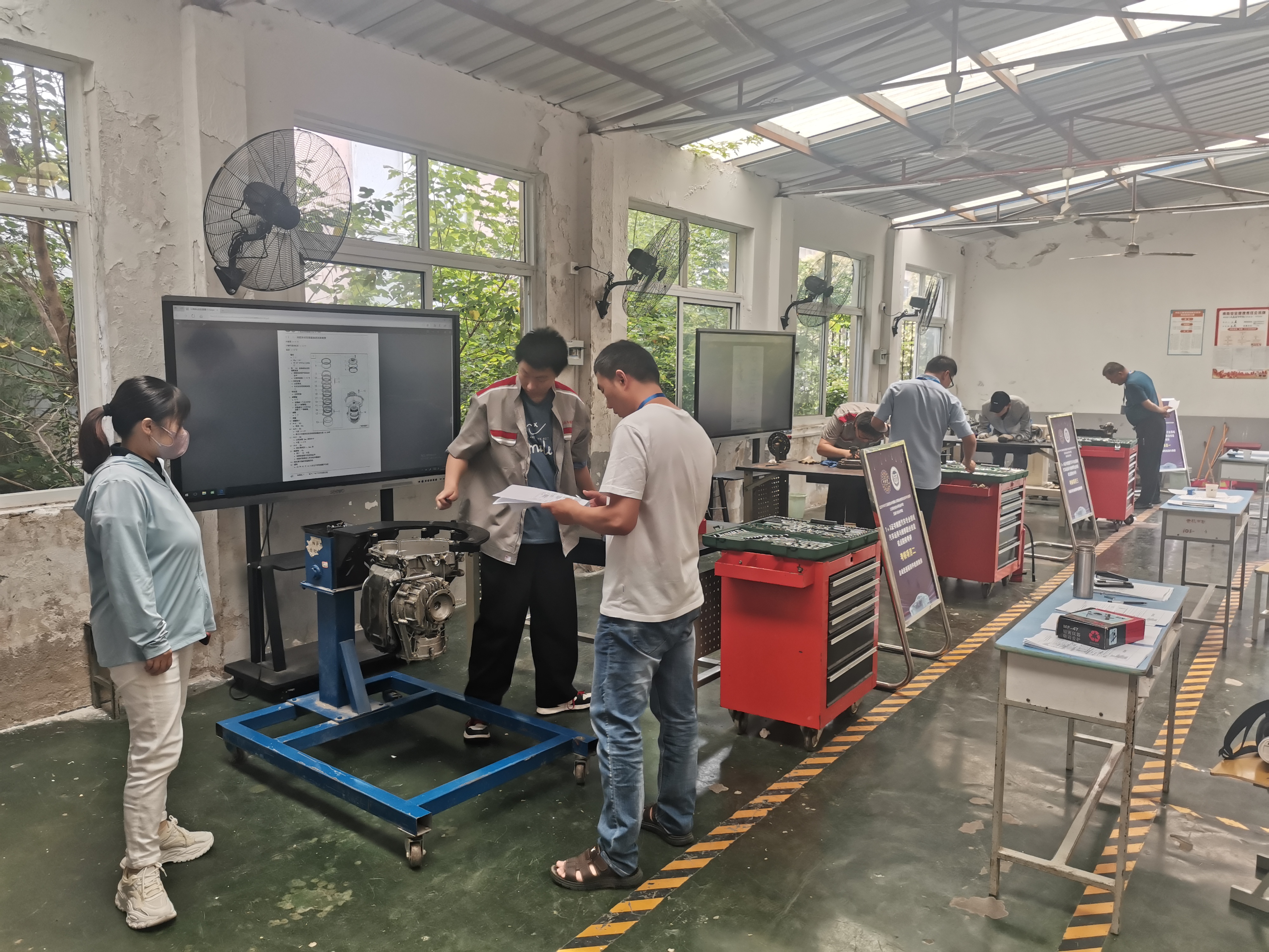 本次考证采取实操的形式,内容包含动力系统部件检测与维修、自动变速箱部件检测维修、传动与分动部件检测维修、动力与驱动系统性能检测四个项目的考核,全面考查员工对汽车动力与驱动系统的掌握情况和操作能力。经过两天的考核,24位考生认真操作,规范填写工单,均在规定的时间内完成了相关考核内容。