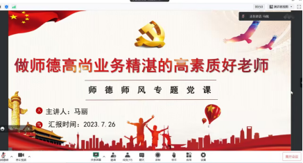 按照《省教育厅关于开展师德集中学习教育的通知》要求,7月26日上午9:30,K1体育教师党支部全体党员线上召开师德师风专题党课。党支部书记马丽以《做师德高尚业务精湛的高素质好老师》为题主讲。