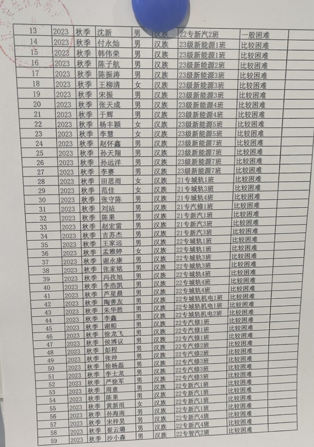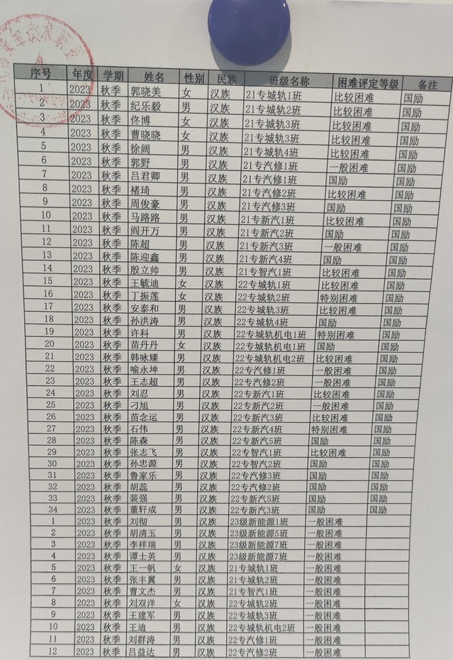 汽车与交通公司公司2023年秋季国家励志奖学金国家助学金公示名单