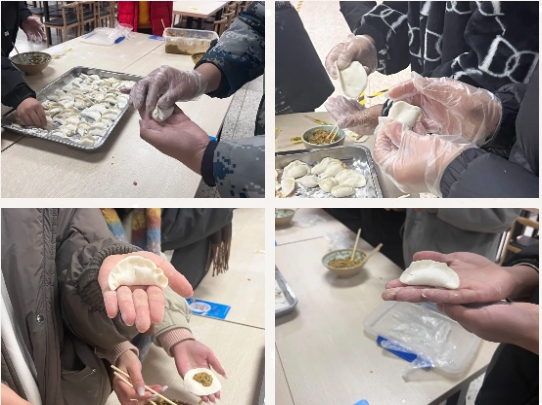 活动现场气氛温馨和谐,大家团结协作,忙得不亦乐乎。大家互相传授包饺子的经验,比较彼此饺子的形状。在你一言、我一语中,一排排个性十足的饺子就诞生了。整个餐厅欢声笑语,其乐融融,浓浓的师生情谊挡住了凛冽的寒风。