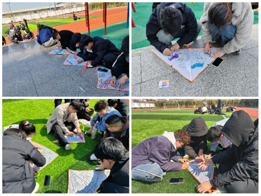 同学们以小组为单位,共同创作纸鸢作品。活动中,同学们认真专注,创意十足,在纸鸢上写下梦想、签下名字或画上各种可爱顽皮的图画,形式多样,色彩鲜艳,各种奇思妙想的设计使得原本单调苍白的纸鸢变得栩栩如生。