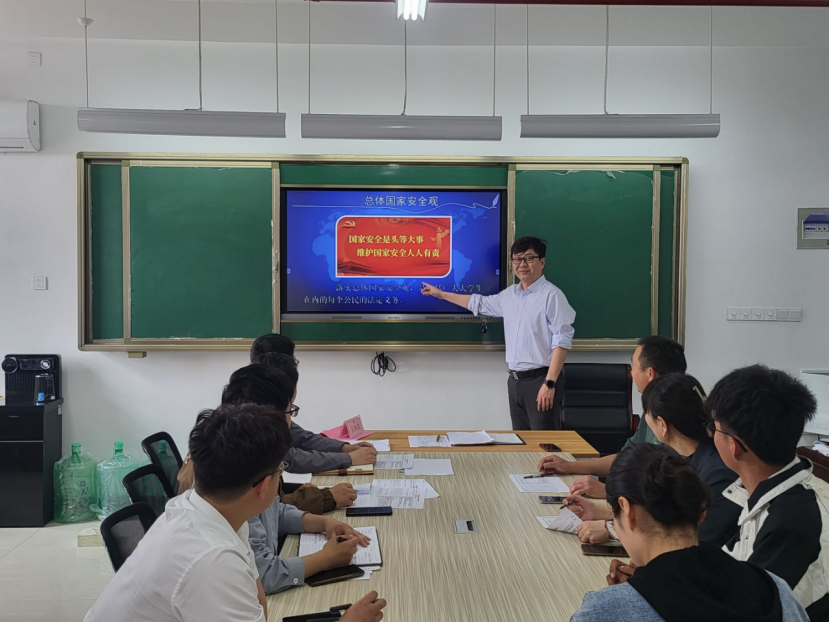 党总支副书记郝旺林以《树牢总体国家安全观增强国家安全意识》为题,从总体国家安全观核心要义、内涵要求、法律体系以及危害国家安全行为、履行维护国家安全义务等五个方面,深入浅出地阐述了国家安全的重要性,并组织观看专题片《国安10年 与你同在》。
