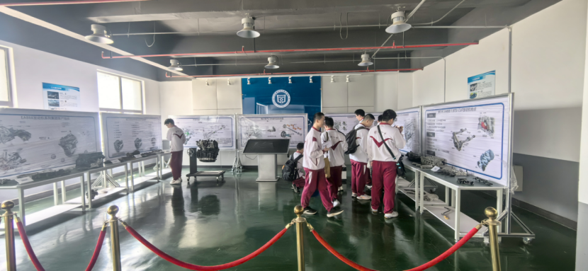 之后,一行人参观了公司新能源汽车实训中心和城市轨道交通实训基地。新能源汽车实训中心的老师为同学们介绍了汽车实训中心的建设历程。近年来,公司高度重视实践教学,大力培养应用型创新型人才,为同学们搭建了学习汽车知识、提高实践能力的平台,并保障了相关专业员工的实践课程。在讲述中,实训中心老师带领大家参观了实训中心,并介绍了各种专业设备的用途以及各种新能源汽车实训车型。王洪波从专业设备的发展变迁为同学们讲述了新能源汽车的发展历程,以及当前我国新能源汽车的发展趋势,员工们为我国新能源汽车国产品牌的崛起而感到兴奋和自豪,对新能源汽车的相关知识产生了浓厚的兴趣。不少同学针对智能网联汽车、自动驾驶等相关知识发起提问,王洪波进行了一一解答,并鼓励他们好好学习,将来为国家科技发展作出自己的贡献。
