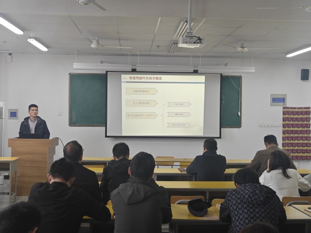 讲座中,李增以智能驾驶汽车为主题,结合个人工作经历,从智能驾驶汽车技术、智能驾驶功能产品开发和产品开发流程管理等方面做了详细的介绍。与会老师与李增就智能驾驶汽车发展、技术发展、产品开发等方面进行了交流讨论,学术氛围良好。