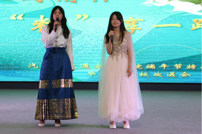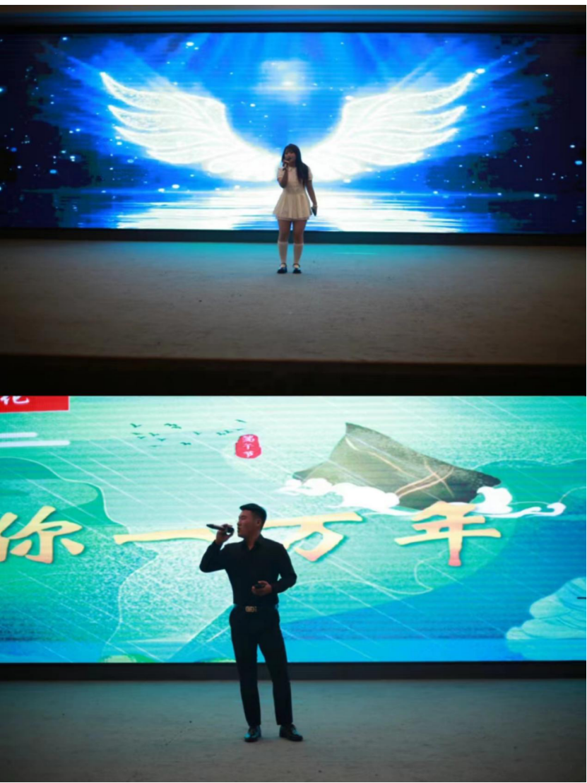 “粽”艺大观。由张博捷同学演唱的歌曲《让一切随风》生动地诠释了这场相遇的故事,故事的开始,始于初秋,故事的结尾,终于盛夏,我们从五湖四海来,复归天南地北去。张梦然同学用她纯净的嗓音演唱《有形的翅膀》为我们诠释这首歌曲背后的故事。