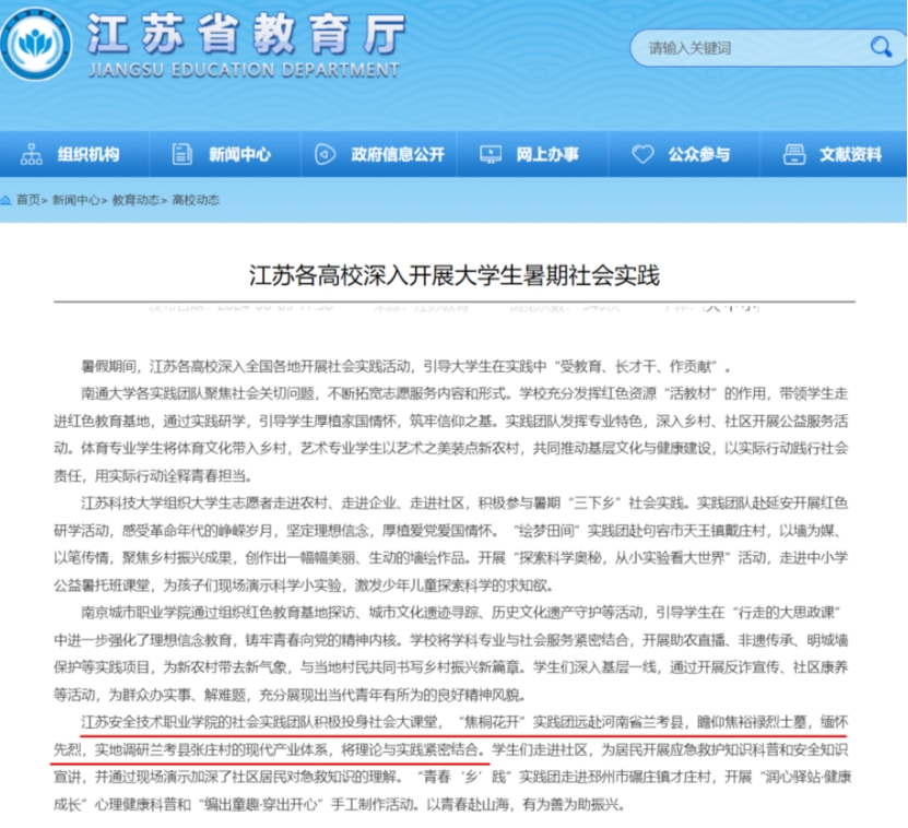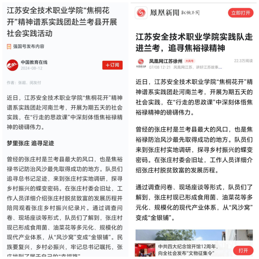 公司张超老师指导的“焦桐花开”精神谱系实践团远赴河南省兰考县,开展为期五天的暑期社会实践,在“行走的思政课”中深刻体悟焦裕禄精神的磅礴伟力,实践活动效果显著,被学习强国、凤凰网和江苏省教育厅以图文、动态等方式报道,在校内外产生积极反响。