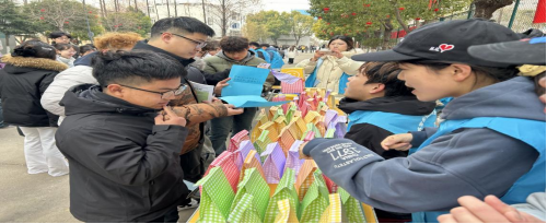 活动现场热闹非凡,雷锋精神焕发新活力。上午10点,活动正式开始。图文楼北侧人头攒动,同学们热情高涨,纷纷前来参与这一别开生面的志愿服务活动。活动现场设置了多个“志愿盲盒”抽取点,每个盲盒都蕴含着一份未知的志愿服务任务。