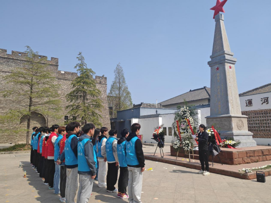 活动伊始,师生们在运河支队四百烈士纪念碑前举行了庄严肃穆的祭奠仪式。全体成员整齐列队,向革命先烈默哀致敬,并献花。苏乡永助导师团队代表郝旺林在致辞中强调:“运河支队先烈用生命诠释了‘不怕牺牲、甘于奉献’的精神,他们的英勇事迹是激励我们奋发图强的精神动力。”