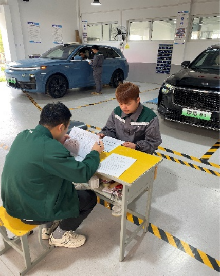 本次初赛选拔分别在全国44所理想汽车合作院校订单班中开展。参赛学员围绕理想汽车最新车型的实车操作、故障诊断及维修技术展开竞技。考核内容紧密结合企业“一位专家服务全流程”的核心理念,模拟真实售后服务场景,重点考察员工的实践能力和应变能力。理想汽车导师团队与公司教师共同组成评审组,通过技术答辩、实操评分等环节,综合评估学员的专业技能与职业素养。