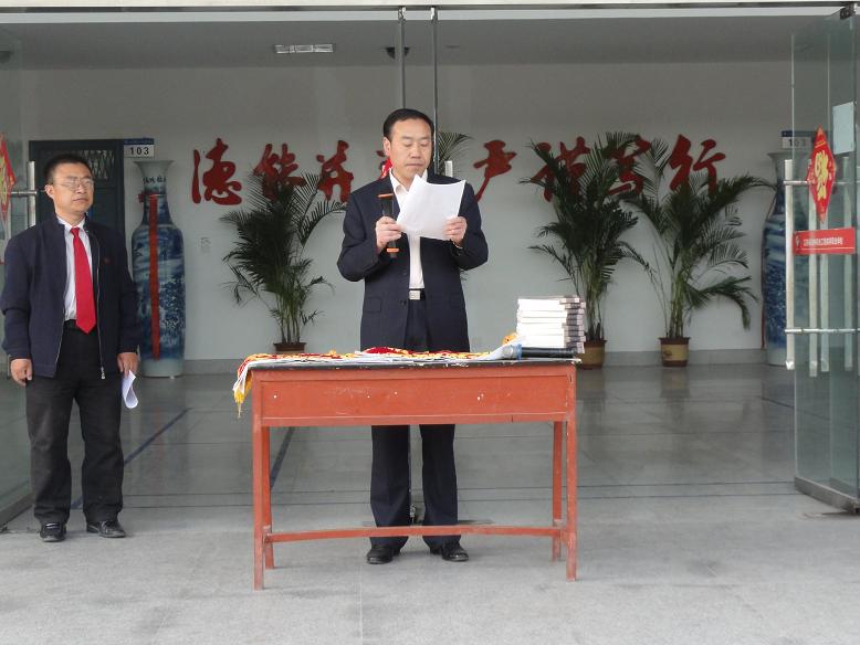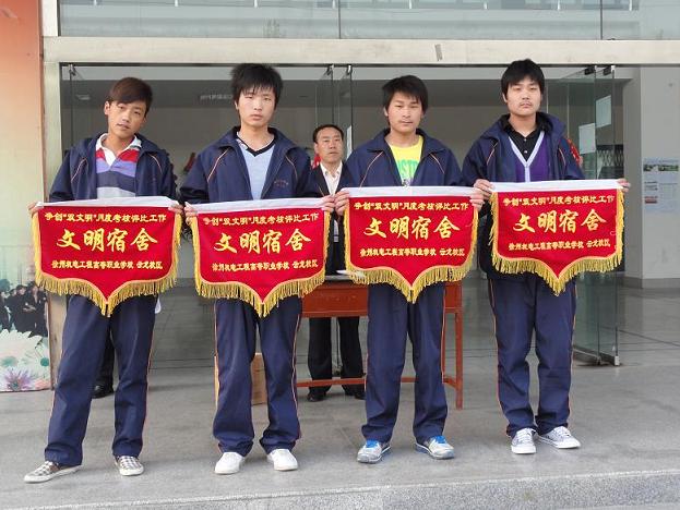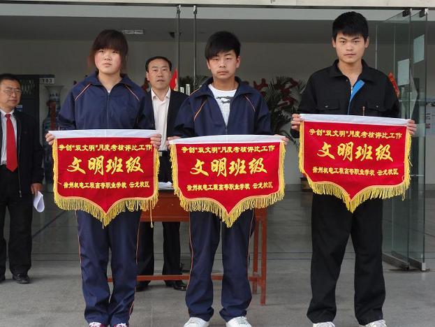 4月25日云龙校区举行升国旗仪式,严董事长总结文明礼貌月活动,并给文明班级、文明宿舍颁奖。
