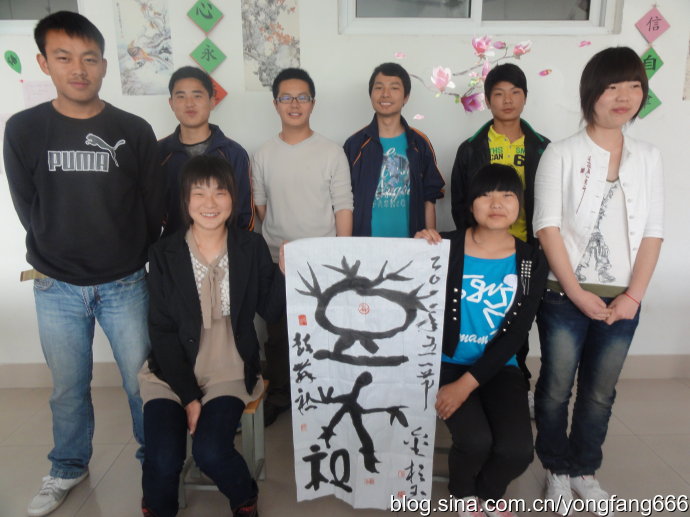鼓舞社(徐机高职校云龙校区书画兴趣小组) 辅导教师赵飞题写社名, 以科学的理论武装人,以正确的舆论引导人,以高尚的精神塑造人,以优秀的作品鼓舞人,不断培养和造就一代又一代有理想、有道德、有文化、有纪律的社会主义新人!