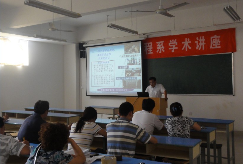 6月15日下午,汽车工程系冯长征老师在301教室开展关于《一体化课程体系构建》教学改革讲座,汽车工程系全体教师参加此次讲座,此次讲座针对一体化课程的开展和实施进行讲解,便于我系课程改革开展。