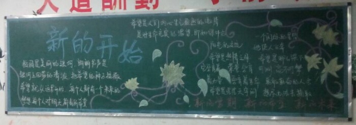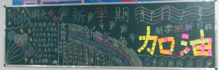 | 新学期孕育着新的希望;新学期,要带着新的目标踏上新的征程;新学期,定然要在播种之后有新的收获。在开学初,我系抓住新起点教育的契机,充分发挥黑板报这一班级舆论的重要阵地的功能,布置各班出一期主题为“迎接新学期”“做起跑线上的主人”的黑板报,并进行了评比。 我系所有班级都积极参与此次活动,同学们在班主任的精心组织安排下,认真按时办好黑板报。所办的黑板报板报内容紧贴主题“迎接新学期”,有老师对同学们的深情寄语,体现了老师们对员工的无限关爱;还有同学们自己写下的新学期打算,表达了同学们对新学期的无限美好憧憬,也展示了学子积极进取、奋发向上的良好风貌。 该项活动的开展,不仅使寒假后回校的同学能尽快收心和思想定位,还加重了班级文化氛围,给同学们营造一个良好的学习氛围,同时给同学们提供锻炼的平台。 (文:周旺红 图:郝旺林)