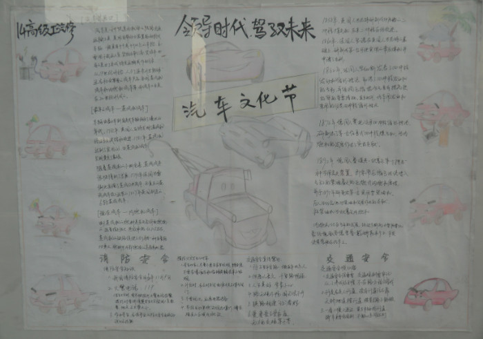 | 为丰富校园文化生活,激发员工的专业学习兴趣、培养员工“热爱专业、热爱学习、热爱职业”的学习态度,促进同学们养成良好的学习习惯,提高学习能力,汽车工程系在12月份举办为期一个月的第二届汽车文化节。 12月18日,本次汽车文化节活动之一的“汽车知识、安全”手抄报比赛圆满结束,经过评选,将部分较好的作品作了展示,同时也是对本届汽车文化节的宣传。 为做好手抄报,各班员工围绕“汽车知识、安全”主题,自己收集资料、设计版面、编辑内容。一张张色彩缤纷的手抄报交到学管办公室,各班手抄报风格迥异,尽显风采,不仅展示了员工们的才智,丰富员工的业余文化生活,也让员工们自身的专业文化素养得到了提高。 (文:周旺红 图:黄斌)