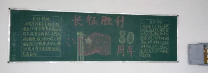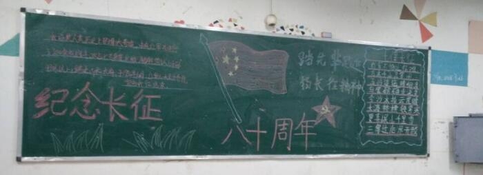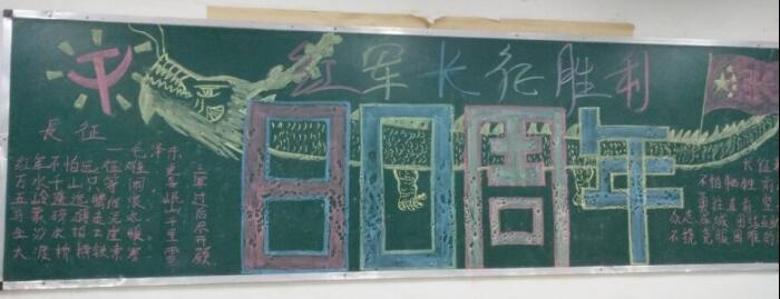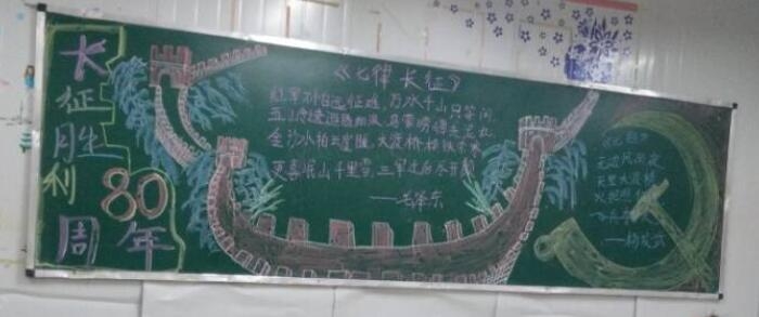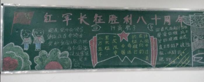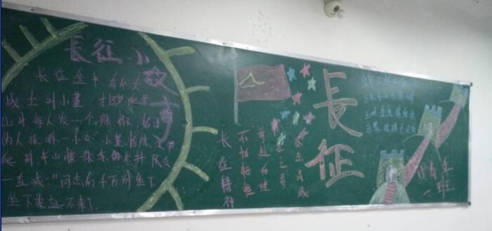活动中,各班能认真组织,充分发挥员工的主动性和积极性,既分工又合作,制作的黑板报主题突出,内容丰富,图文并茂,版面生动活泼,融时代性、知识性、教育性于一体。有的编写宣传长征中的感人事迹、有的颂扬长征诗词,火红的国旗、党旗显得格外明亮。通过黑板报的内容让同学们知道长征是为了追寻理想与信念,为了改变国家与民族的命运,在共产主义信仰的指引下,穿越千难万险,用血肉之躯走出的一条光辉之路。
