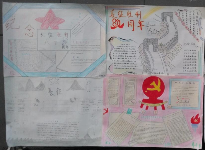 活动中,各班能认真组织,充分发挥员工的主动性和积极性,既分工又合作,制作的手抄报主题突出,内容丰富,图文并茂,版面生动活泼,融时代性、知识性、教育性于一体。有的编写宣传长征中的感人事迹、有的颂扬长征诗词,火红的国旗、党旗显得格外明亮。通过手抄报的内容让同学们知道长征是为了追寻理想与信念,为了改变国家与民族的命运,在共产主义信仰的指引下,穿越千难万险,用血肉之躯走出的一条光辉之路。