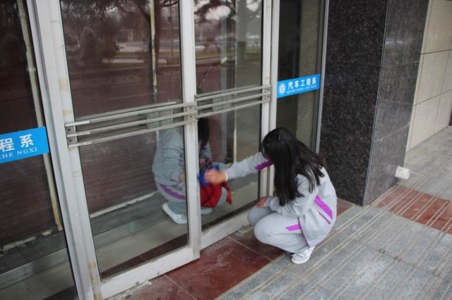 刚下课,大家就迅速集合完毕,经过简单的分工,便行动起来:扫地、拖地、擦玻璃、倒垃圾、清理教学楼外围……大家干的热火朝天。为了保证清扫彻底,志愿者们不放过任何一个角落,尤其是针对垃圾死角,采取“地毯式”清理,隐藏在内的垃圾被源源不断地清扫出来。