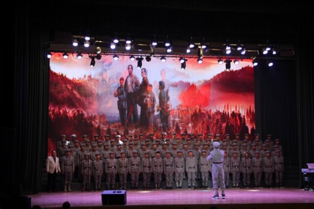 在整场比赛中处处都洋溢着爱国热情,参赛的同学们精神焕发,用悠扬的歌声带领现场观众重温了红军二万五千里长征的光辉足迹和奋斗历程,讴歌了红军战士不怕牺牲、百折不挠的英雄品格,表达了热爱党、忠于党的理想信念。嘹亮激昂的歌声再配以朗诵、伴舞等表演形式赢得了现场观众的的阵阵掌声,将比赛一次次推向高潮。