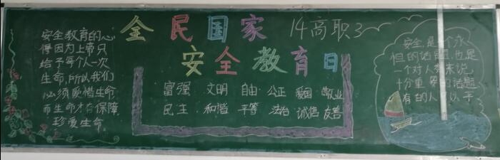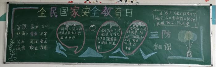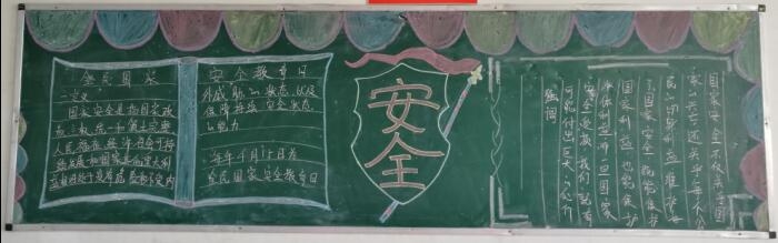 各班充分利用黑板报这块宣传阵地,查询、了解“全民国家安全教育日”的相关知识,让本班同学充分学习相关内容,大家充分认识到国家安全是安邦定国的重要基石,“国家安全、人人有责”。黑板报不仅涉及国家安全,还有日常安全常识等,为全体同学敲响了安全警钟。