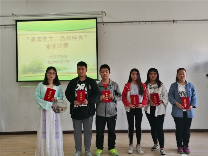 比赛中,参赛选手精神饱满,声情并茂。他们用真挚的情感,以表演诵、配乐诵等不同形式表现出文字所带来的魅力,或激昂高亢,或深情款款,或抑扬顿挫,发挥了自己的诵读水平。最终,15高职汽修5班的朱瑞新同学凭借亮眼的表现获得了一等奖,比赛还评出了二等奖2组、三等奖3组,并进行了表彰奖励。
