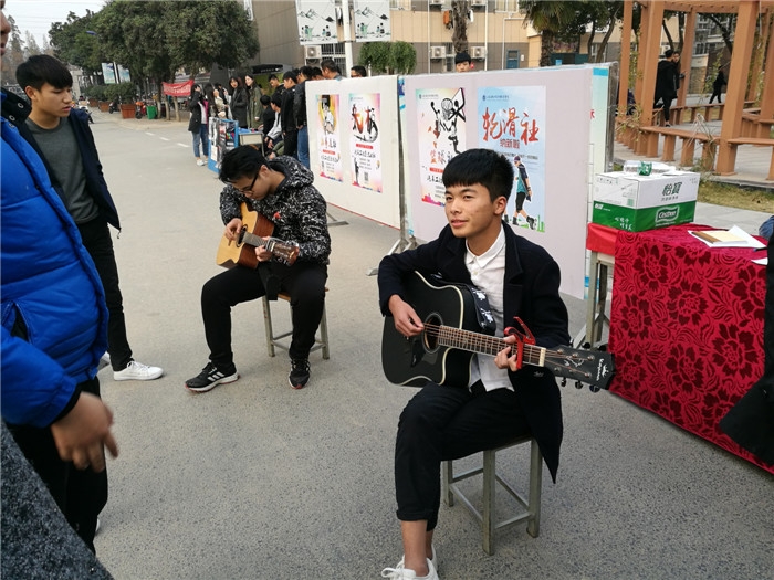 我系参加的社团有太极社、轮滑社、形体舞蹈社、篮球社、吉他社、建模社、跆拳道社等。活动过程中,各社团组织者精心策划,纷纷拿出自己的独门绝活吸引同学们。用最特别的方式向大家宣传自己的社团,吸引了众多同学的热情参与。在纳新活动中,每一个社团都用自己最真挚、最特别的方式邀请同学们加入,一起分享多彩的老员工活。吉他社的成员在广场上激情弹奏,吸引同学们在音乐的海洋里畅游;轮滑社已有成员在宋兴中老师的指导下,在喷泉广场上尽情滑行……