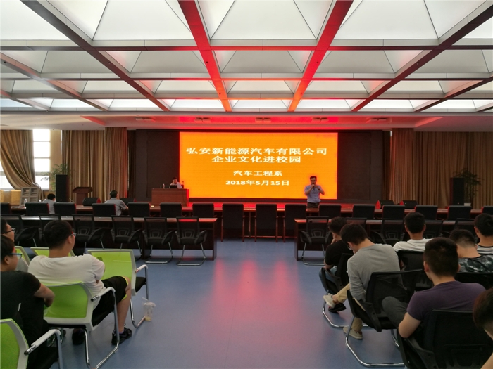 2018年5月15日,弘安新能源汽车有限公司负责人一行来到我系,与我系领导就校企合作进行了洽谈,并于当天下午在云龙校区学术报告厅开展了“企业文化进校园”宣讲会。我系新能源专业所有员工参加了活动。