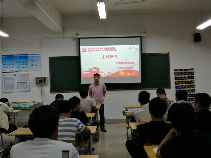 根据中共教育部及公司文件通知,结合我系党支部相关要求,为深入学习贯彻习近平总书记2018年5月2日在北京大学师生座谈会上的讲话及2018年5月4日在纪念马克思诞辰200周年大会上的讲话精神,加强思想政治教育,提高员工的思想觉悟,我系于5月23日晚组织各班开展学习习近平总书记两个讲话精神的主题班会。