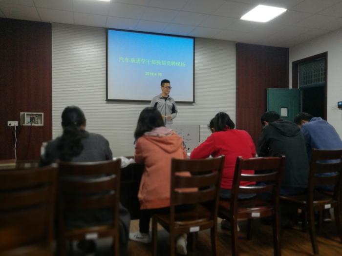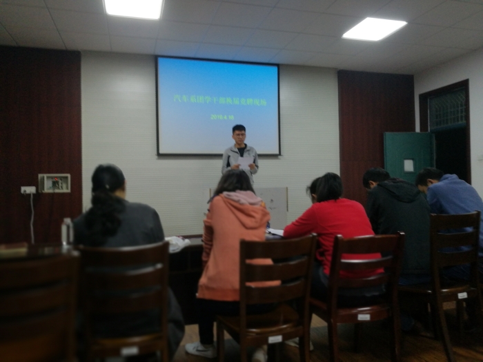 4月16日晚,在202会议室开展汽车系贾汪校区团学干部换届竞聘活动,老一届员工代表,部分班主任,全体学管老师和学管副主任王冬萍参与活动。