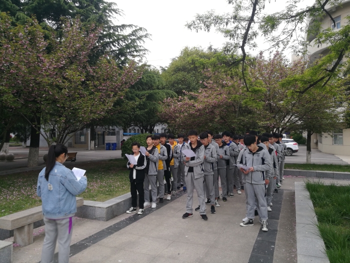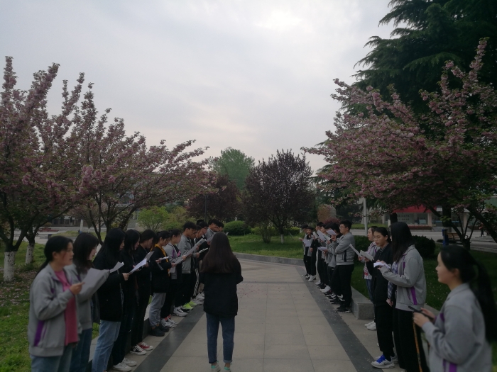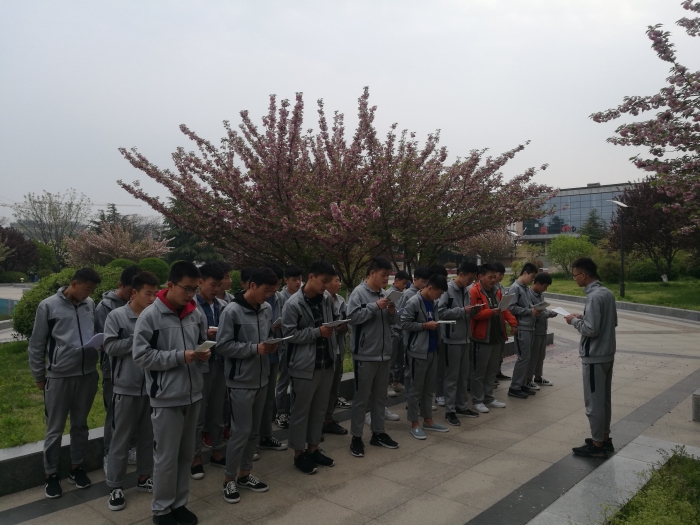 人间最美四月天,四月的晨读期间,汽车系员工在喷泉广场有序地站立,齐声诵读《弟子规》,在美丽的校园里形成一道亮丽的风景。