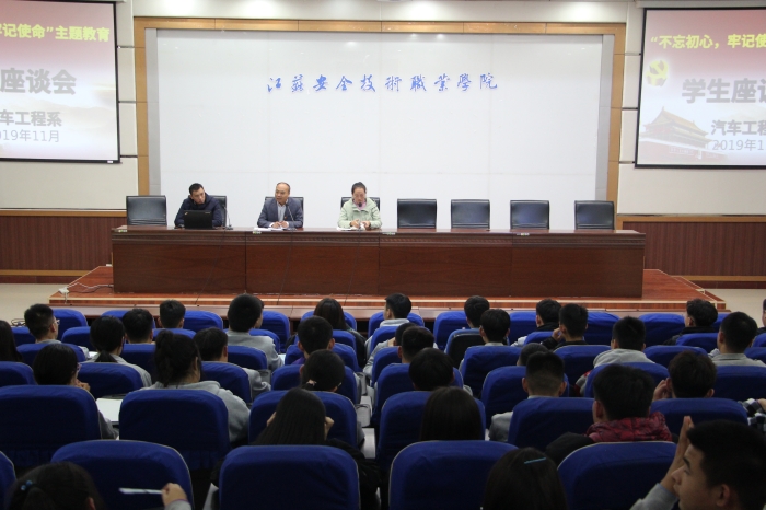 11月5日晚7点,汽车工程系贾汪校区各班级班长、团支书、学习委员共计111名员工代表在106会议室参加“不忘初心、牢记使命”员工座谈会,本次会议由学管副主任王冬萍主持,党支部书记张允志出席并发表讲话。