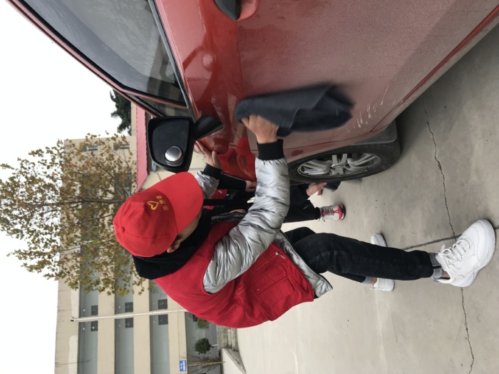 寒冷的北风、抵不住我系入团积极分子服务社会的热情,下午两节课后,由王明瑞老师组织入团积极分子在系部大厅集合,然后有序进去场地。同学们热情高涨,激情奋发,在王明瑞老师的带领下,对公司教职工的车辆进行了洗刷,同学们分部有序,先擦拭后冲洗,经过一番努力,终于完成任务,最后在系门口进行合照,本次活动圆满结束。