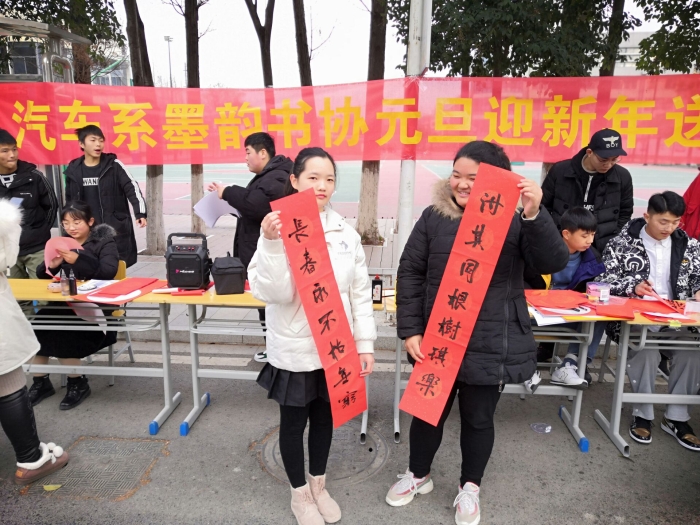 为迎接新春的到来,由公司墨韵书协举办的“迎新春、送春福”活动于12月28日在教学楼门口篮球场边举行。本次活动由墨韵书协成员参加。活动得到了云龙校区汽车工程系的鼎力支持。