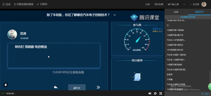 在新冠肺炎疫情特殊时期,为保障全系师生身体健康和生命安全,落实上级文件精神,汽车工程系从2月24日起全面实施线上教学,各门课程按线上教学实施计划开展授课,各项教学标准不降,实现“停课不停教、停课不停学、教学不断线”。授课教师依托智慧职教、中国大学MOOC、爱课程、KTS教育系统等在线教学平台,借助线下自备教学资源库、网络共享课程、精品课程、在线课程等数字资源,以QQ群为依托,通过腾讯课堂、QQ群直播、腾讯会议等直播辅助手段,确保教学计划内课程全面实施。各班主任组织好本班员工认真对待各门课程的学习。全体教务人员及督导人员积极参与听课巡课,课后集中反馈教学效果。目前,汽车工程系包括兼课老师在内的40余位老师都已经按照计划做好了线上教学准备。第一天线上教学,全体教师准备充分,员工积极参与,取得了良好的开端。