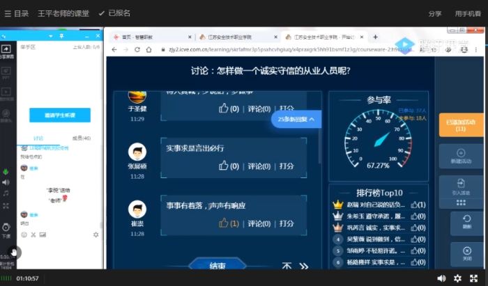 3.针对员工活动参与问题,适当调整过程考核成绩评定,课堂上随机提问,看是否在线学习,合理发挥班级干部的带头作用,同时任课教师也可以及时在班级通报员工的学习情况,进行督促。。