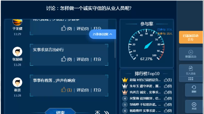 2.员工的活动参与率问题也较为普遍,在多数课堂中发现,教师发起的线上互动活动参与率仅达到60-70%左右。