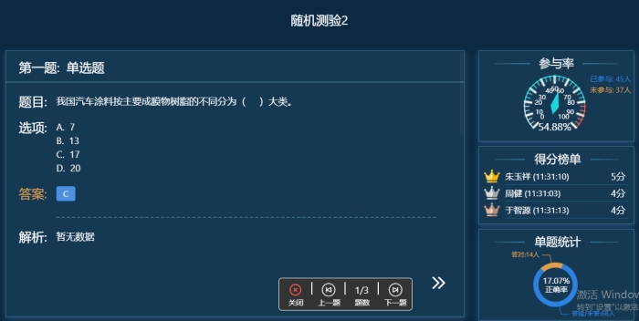 随机测验:自动出结果,方便快捷,可以较好的考察员工学习情况