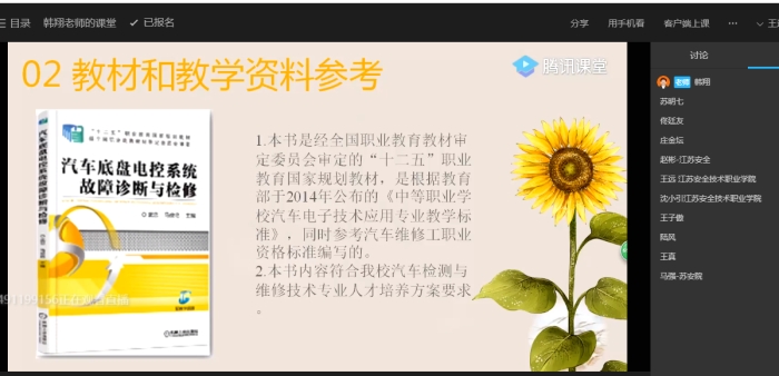 3月17日下午,利用教研活动时间,教研室的王远、庄金坛、韩翔三位老师分别利用腾讯课堂向依次大家展示了《汽车发动机机械系统检查与修理》、《汽车电气设备构造与维修》、《汽车底盘控制系统》三门课程的教学解读。展示完毕后,教研室全体教师利用QQ群各抒己见,共同探讨了三位老师说课程中存在的优缺点以及说课程该如何更好的开展,教研氛十分围浓郁。