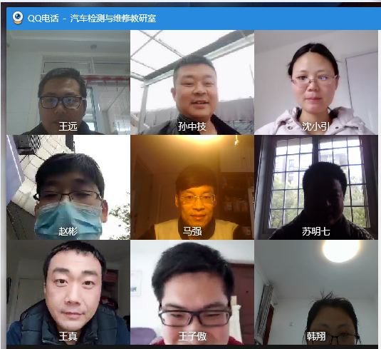 2020年3月31日下午,汽车检测与维修教研室继续利用QQ群视频功能召开了本学期第六周教研室会议。会议由汽车检测与维修教研室主任王远老师主持,维修教研室全体教师参加。