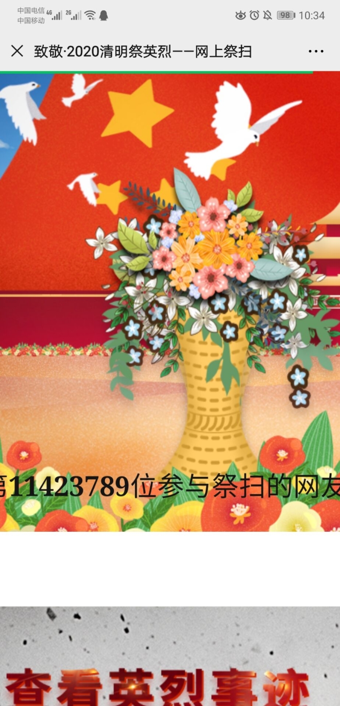 各位同学通过网上为英烈们献花、寄语、留言等方式表达了对英烈的缅怀崇敬之情,同学们共同发出倡议:绿色清明,文明祭扫!