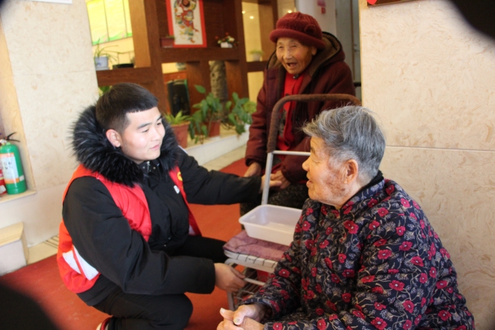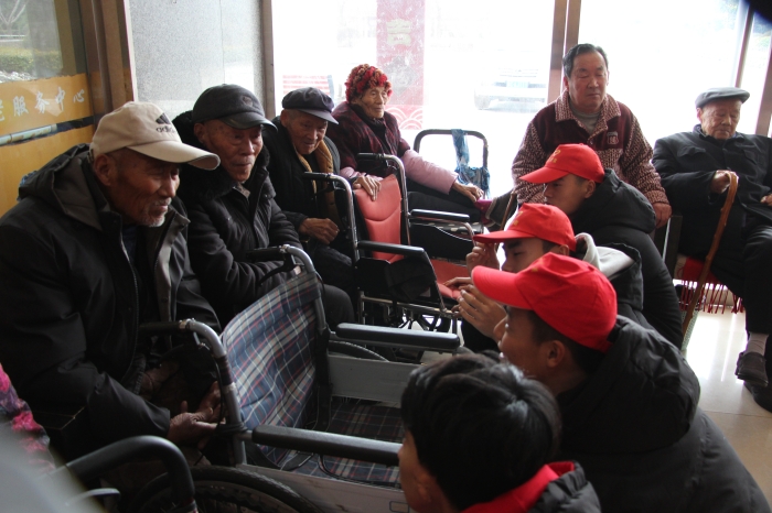 在院方的协助下,志愿者们把敬老院的老人们搀扶到阳光下的庭院里,同学们一起分头行动,大家发扬不怕苦、不怕脏的精神,有打扫庭院的、有整理床铺的、有晒衣物床单的,一些志愿者陪老人说话,和老人们亲切的交流,关切地询问了他们的身体状况和生活情况。另一边,其他志愿者也忙开了,同学们唱老人们喜欢听得歌曲、戏曲,丰富了老人们的精神生活。