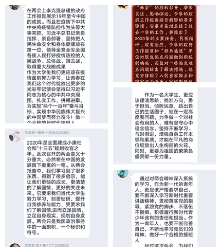 “两会”精神的热潮,广大师生还结合思想、工作、学习、生活实际,畅谈感受、体会、收获,尽情表达自己的心声。